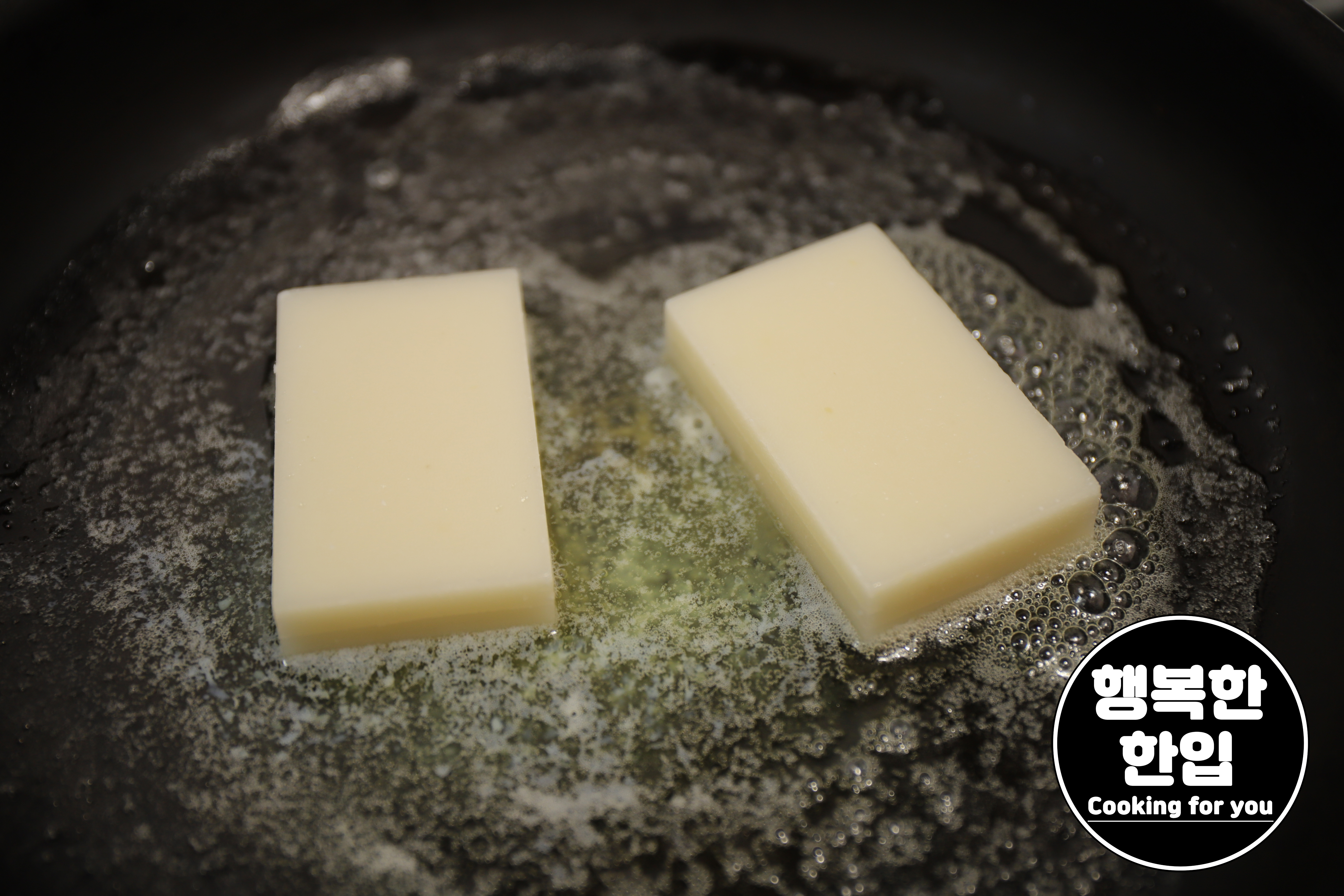 행복한 한입 Cooking for you - 짱구떡 키리모찌 맛있게 먹기 (녹인 버터에 지긋이 굽는중)