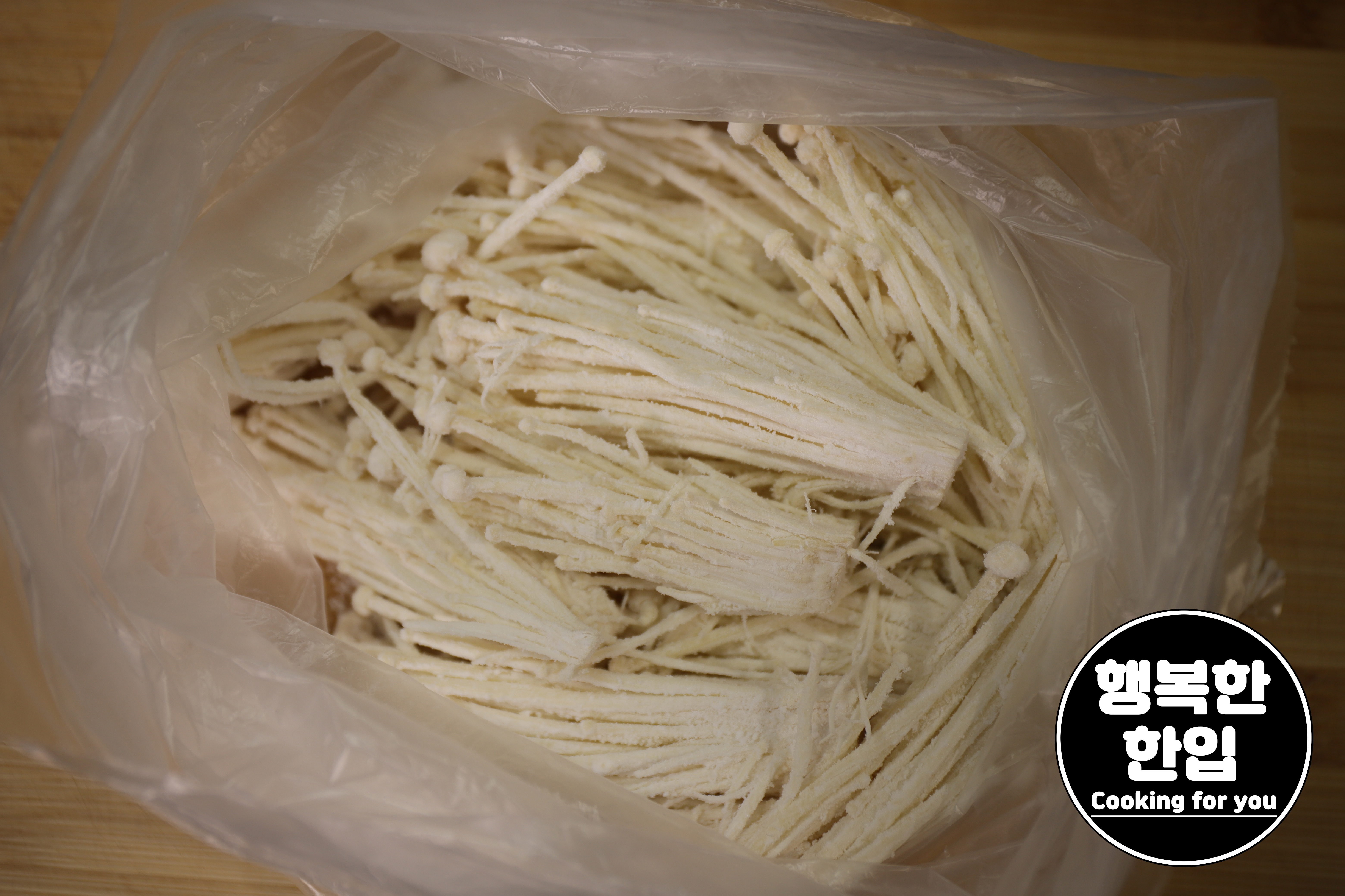 분리시킨 팽이버섯을 위생봉지에 넣고 전분가루를 3~4스푼정도 크게 넣어줍니다.