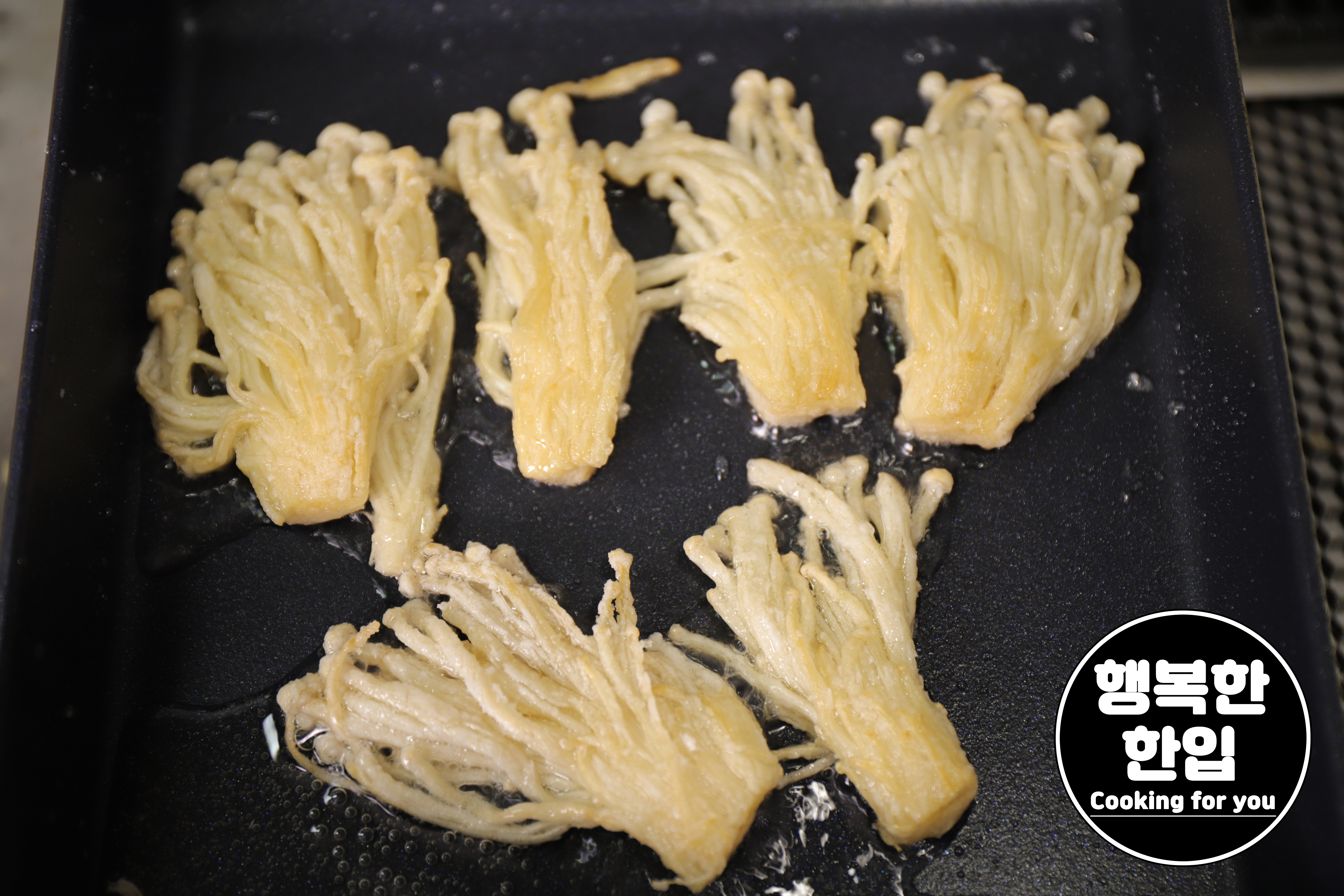 적당한 시간차를 두고 팽이버섯을 뒤집어가며 익혀주세요.